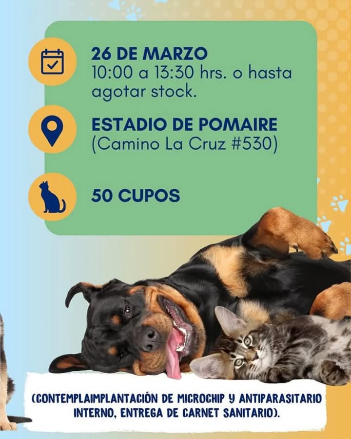 En ambas actividades se realizarán implantaciones de microchips, aplicación de antiparasitarios internos y se hará entrega de un carnet sanitario. A la actividad pueden asistir perros y gatos, pero siempre acompañados de tutores mayores de 18 años.